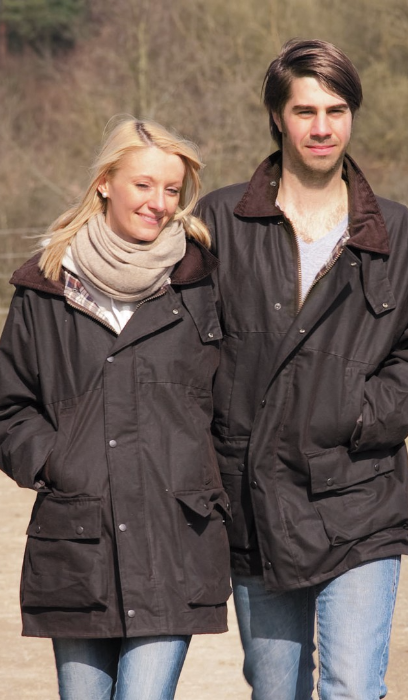 Ideal nicht nur bei rauem Wetter. Für Stauraum sorgen zwei aufgesetzte Blasebalgtaschen und eine mit Reißverschluss gesicherte Rückentasche (Hasentasche). Für absoluten Wetterschutz sorgt das unverwüstliche Oilskin Material.
